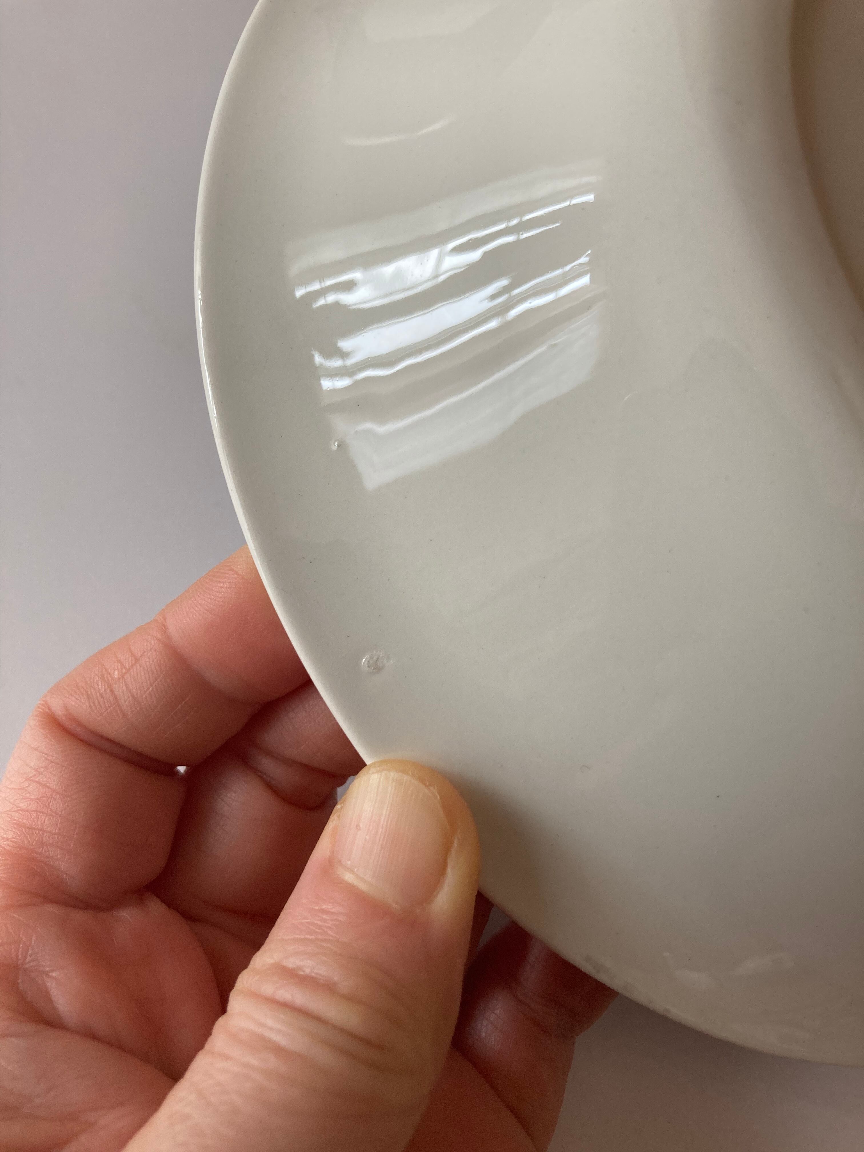 釉薬をつける時についたと思われる小さい点々が見られます(写真4枚目)。