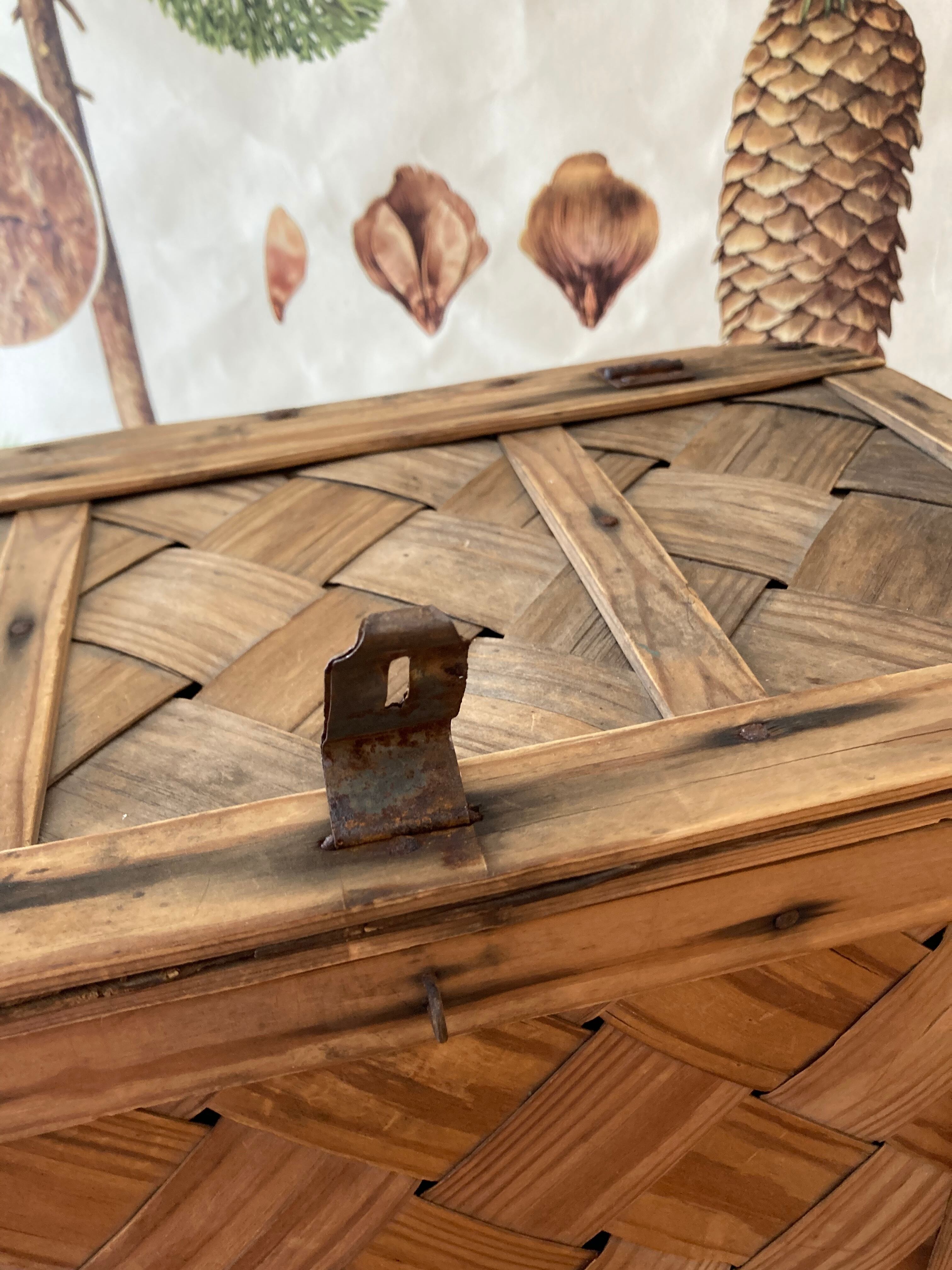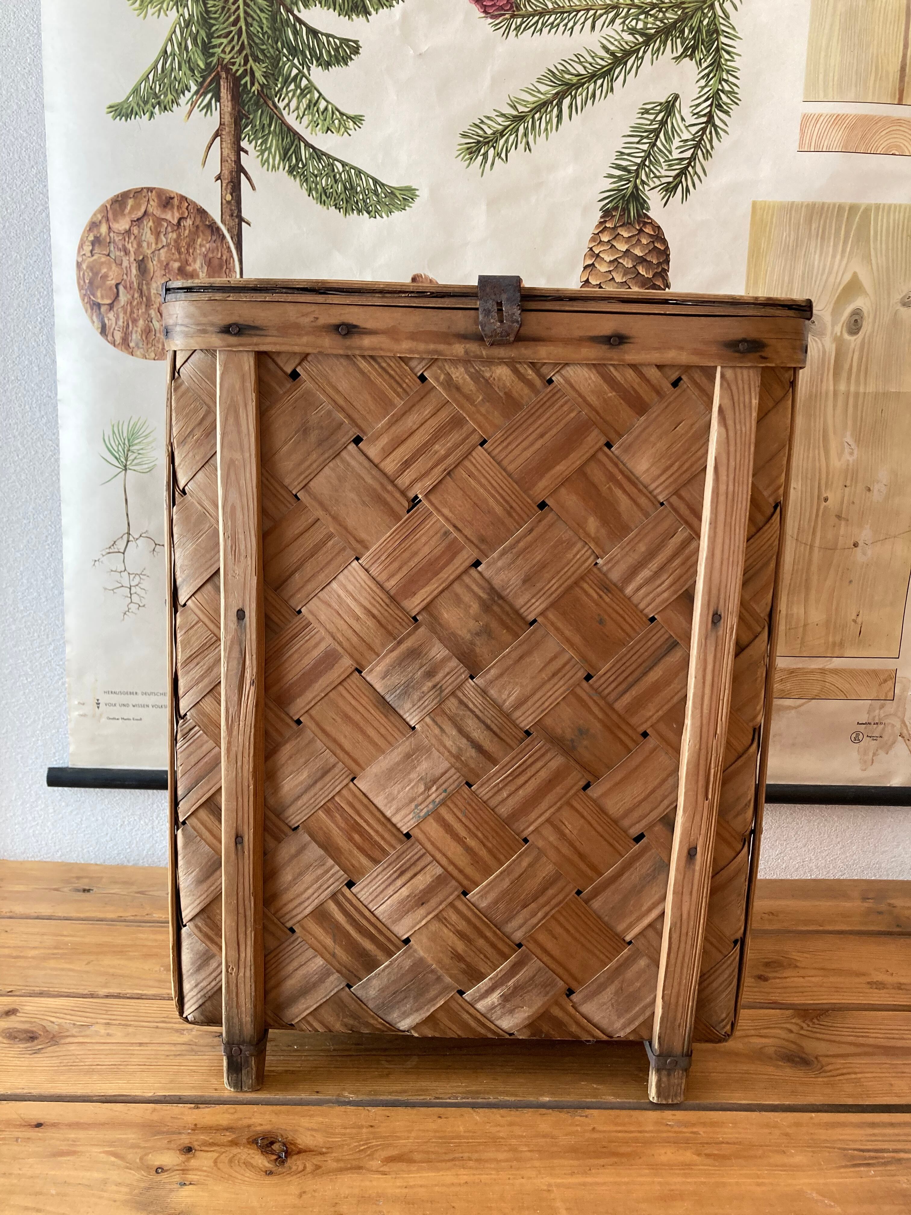 パイン材(松の皮を薄く割いたもの)で作られたスウェーデン伝統工芸の一つです。スウェーデンでは日用品として古くから使われているのだそうです。背中に背負うものをスポーンクント呼ぶそうで、元々は背負うための紐が付いていたそうなのですが劣化により外して販売されていました。なのでクントではなく、スポーンコリと呼んでいいのかもしれません。