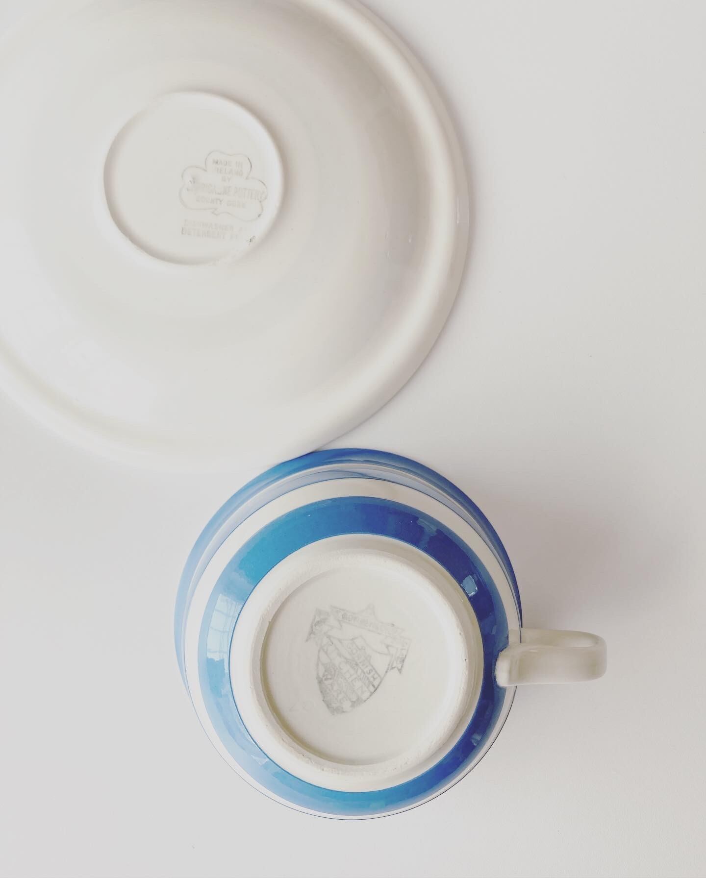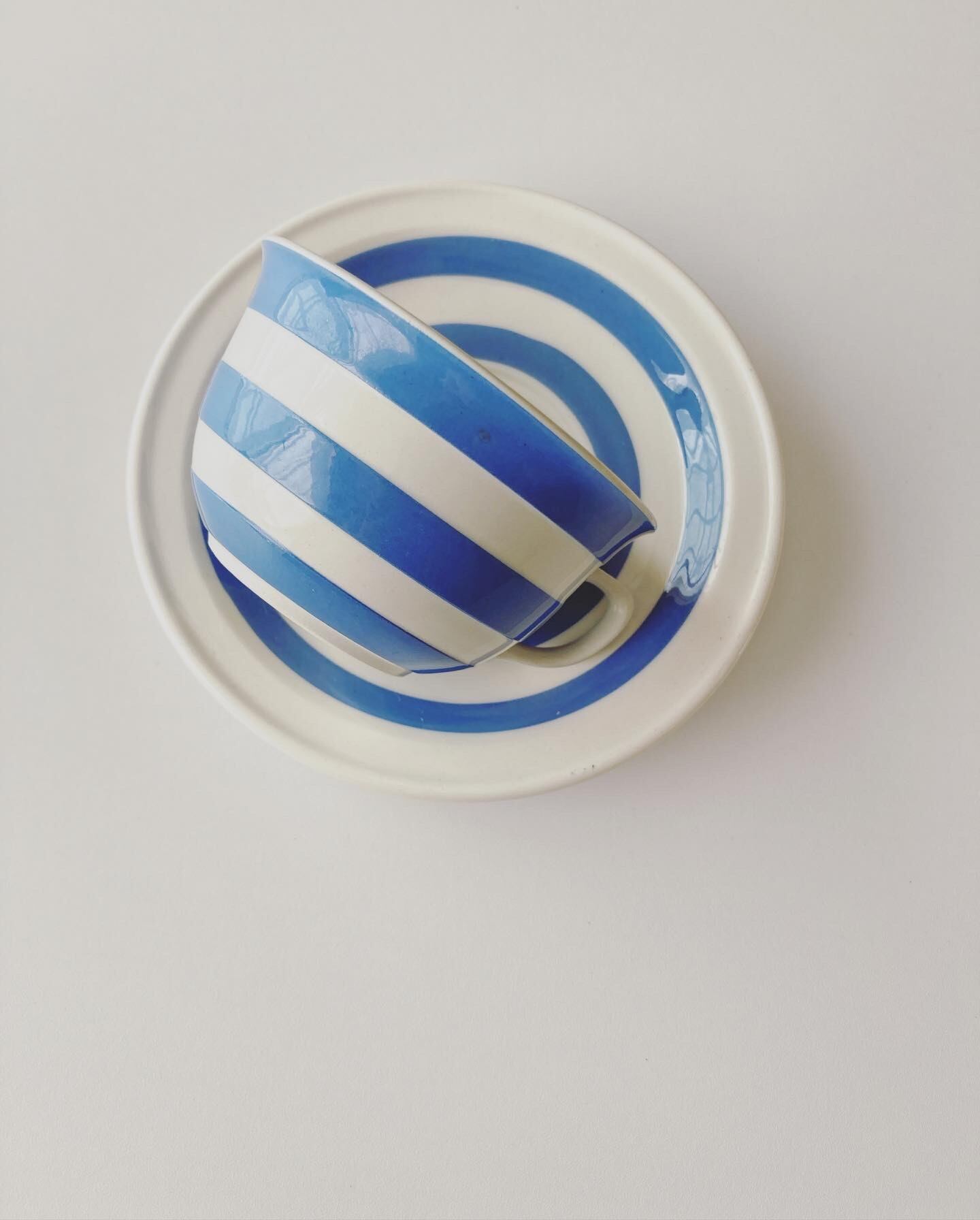 CORNISH wearのiconicな水色ストライプのカップアンドソーサーです。