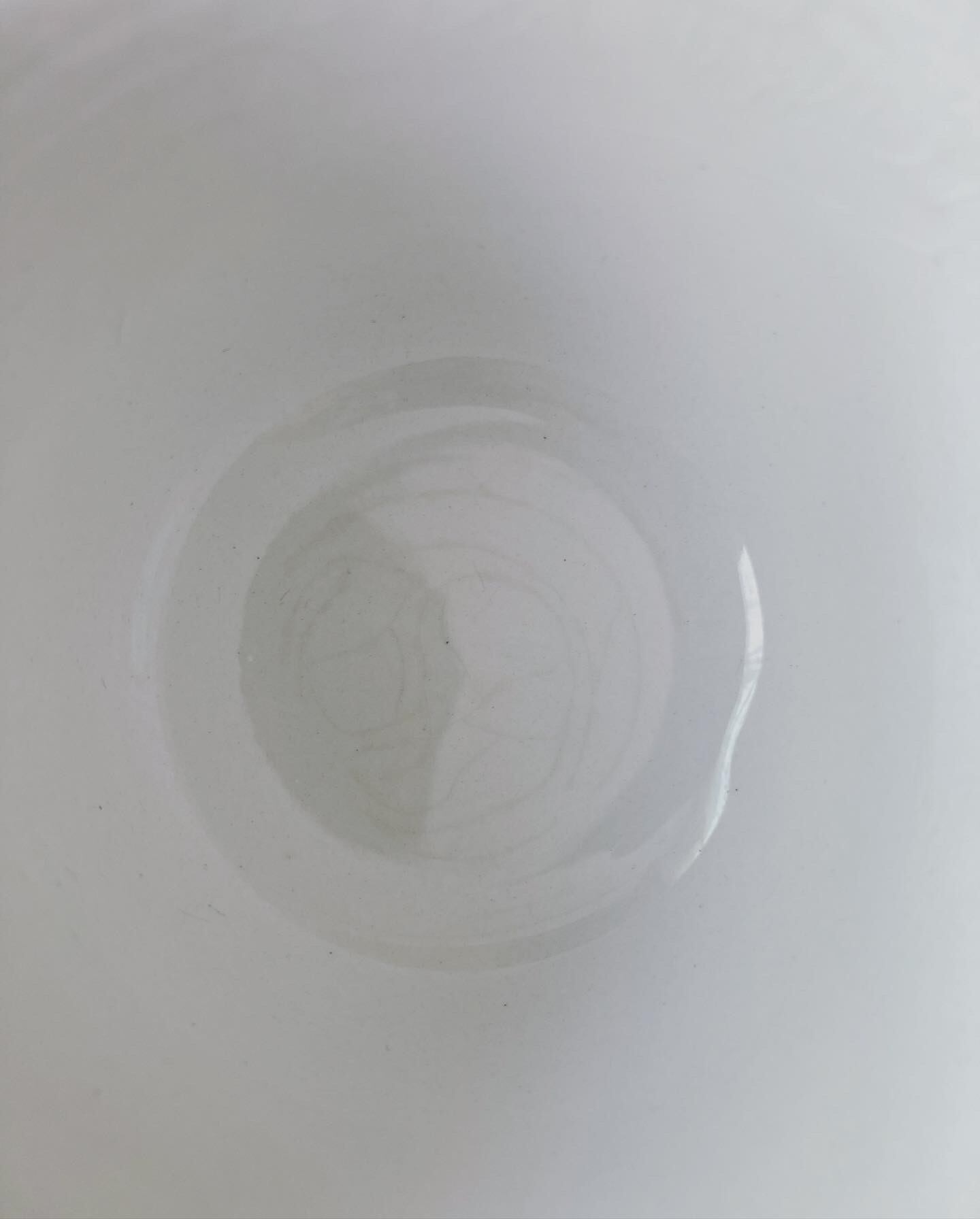 カップとソーサー共に目立つダメージはなくキレイな状態ですが、カップに貫入が見られます。水に濡らすと見えてきますが乾いている時はそれ程目立ちません。使用するのに支障はないと思います。製造時にできたと思われる支柱跡ががソーサー裏に。表面に小さい黒い釉薬が見られます。