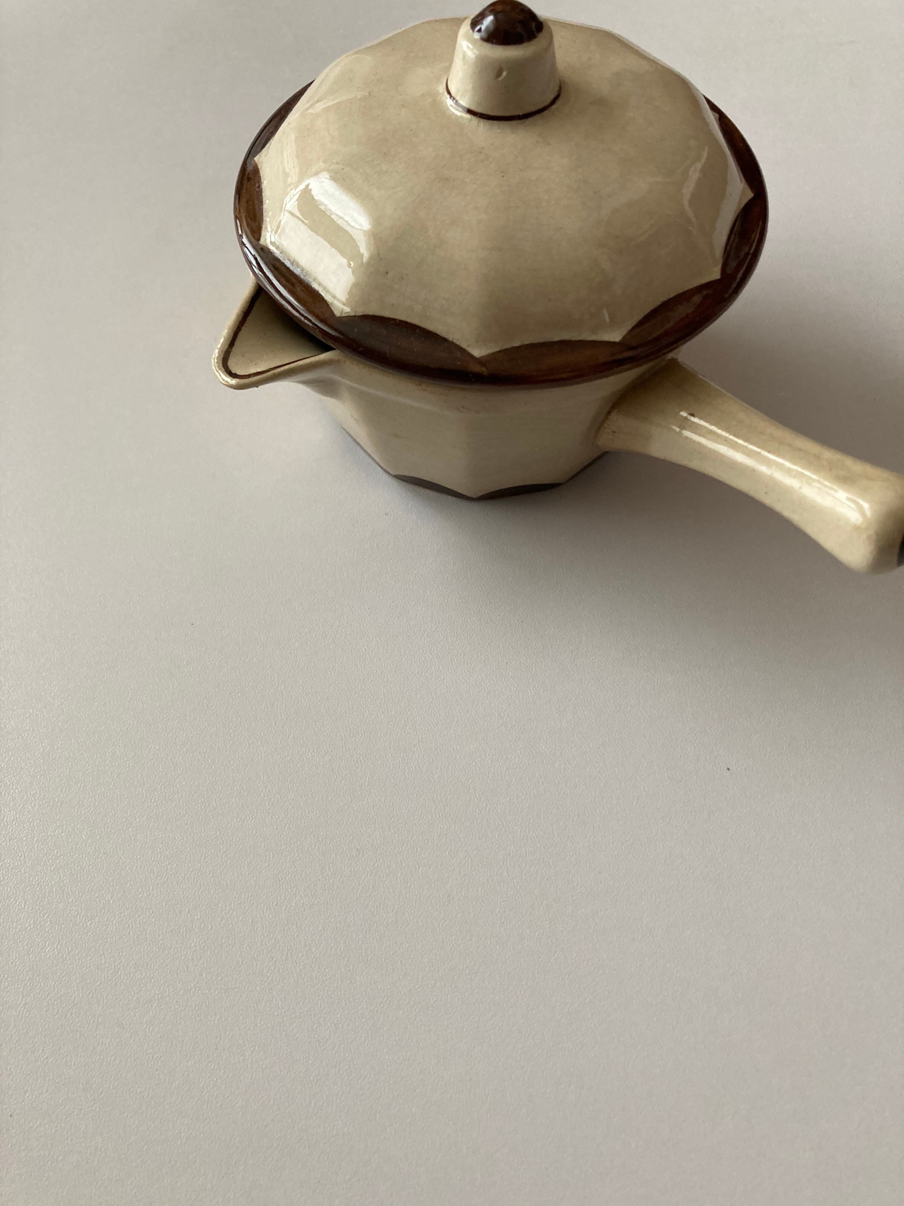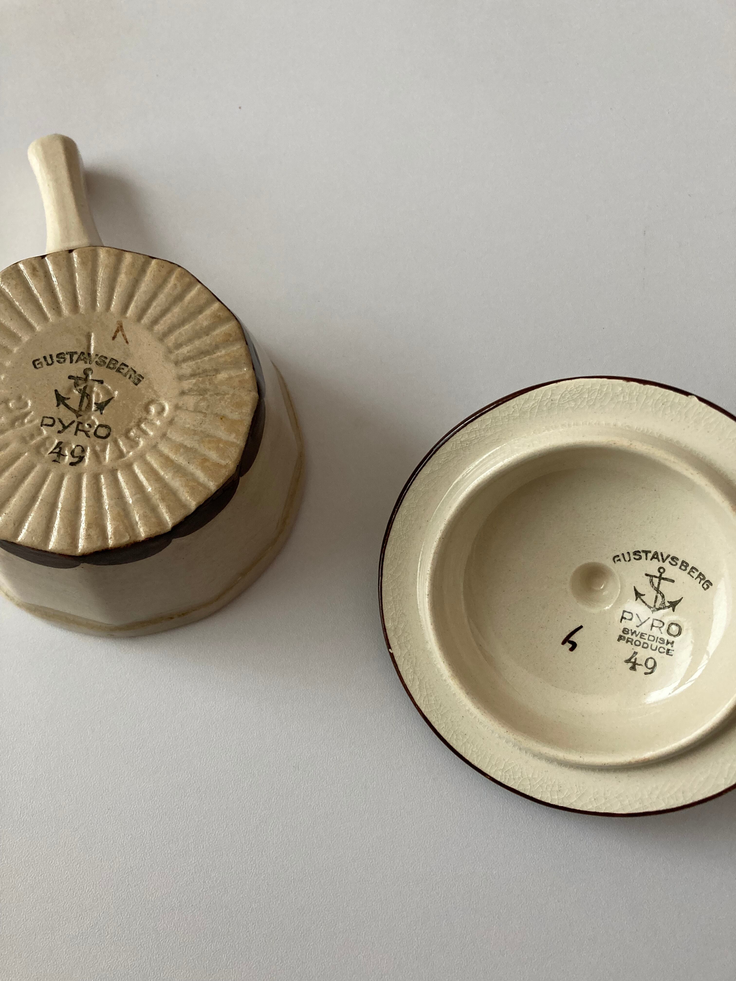 Gustavsberg/グスタフスベリを代表するデザイナーStig Lindberg/スティグ・リンドベリの師と呼ばれたWilhelm Kage/ヴィルヘルム・コーゲのデザインしたPYRO/ピューロ・シリーズのソースパンです。