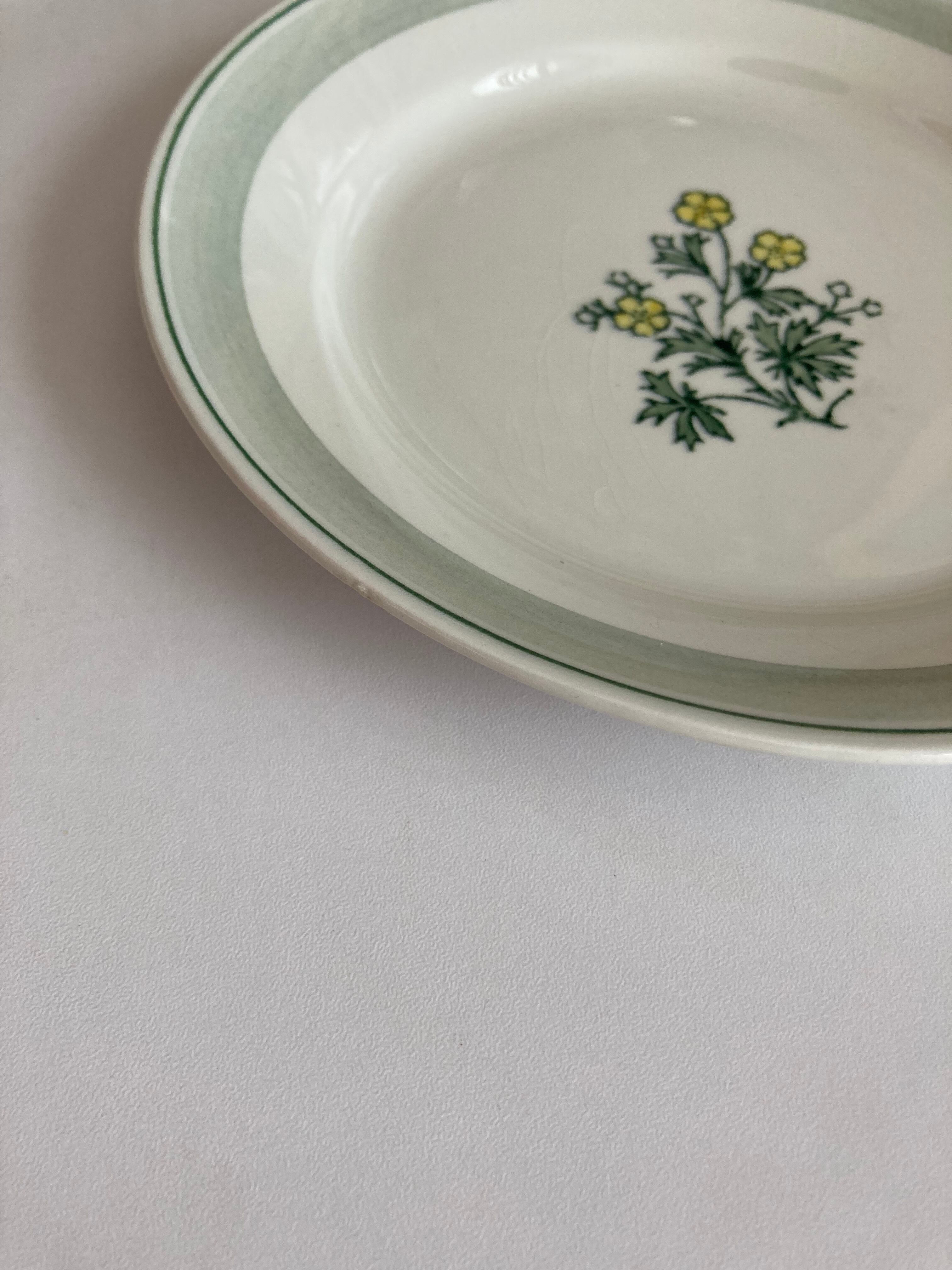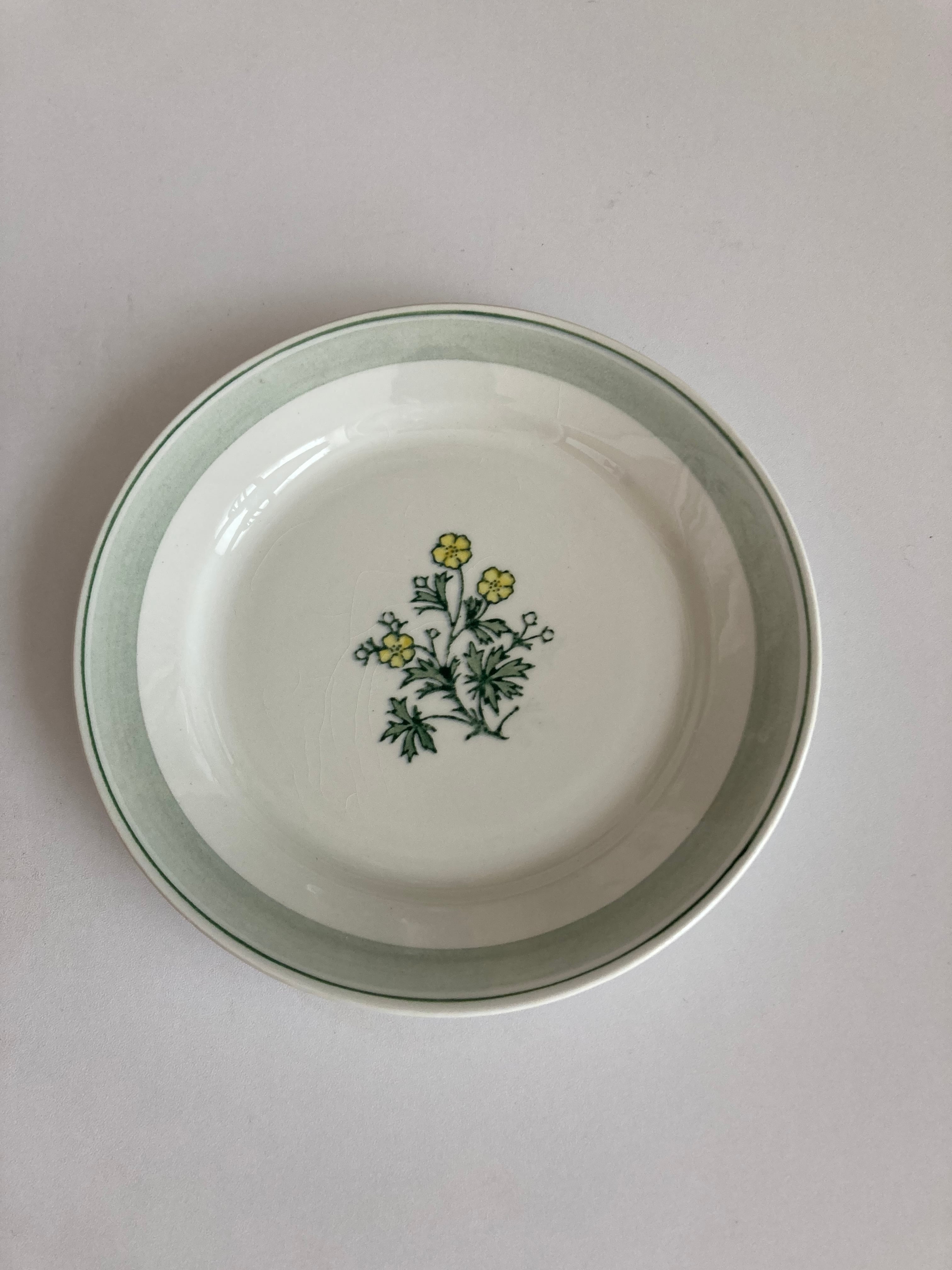 黄色い小花がハンドペイントされているアラビアのケーキプレートです。